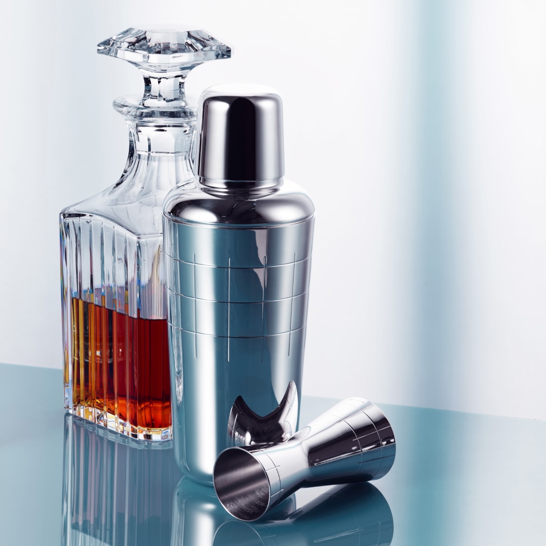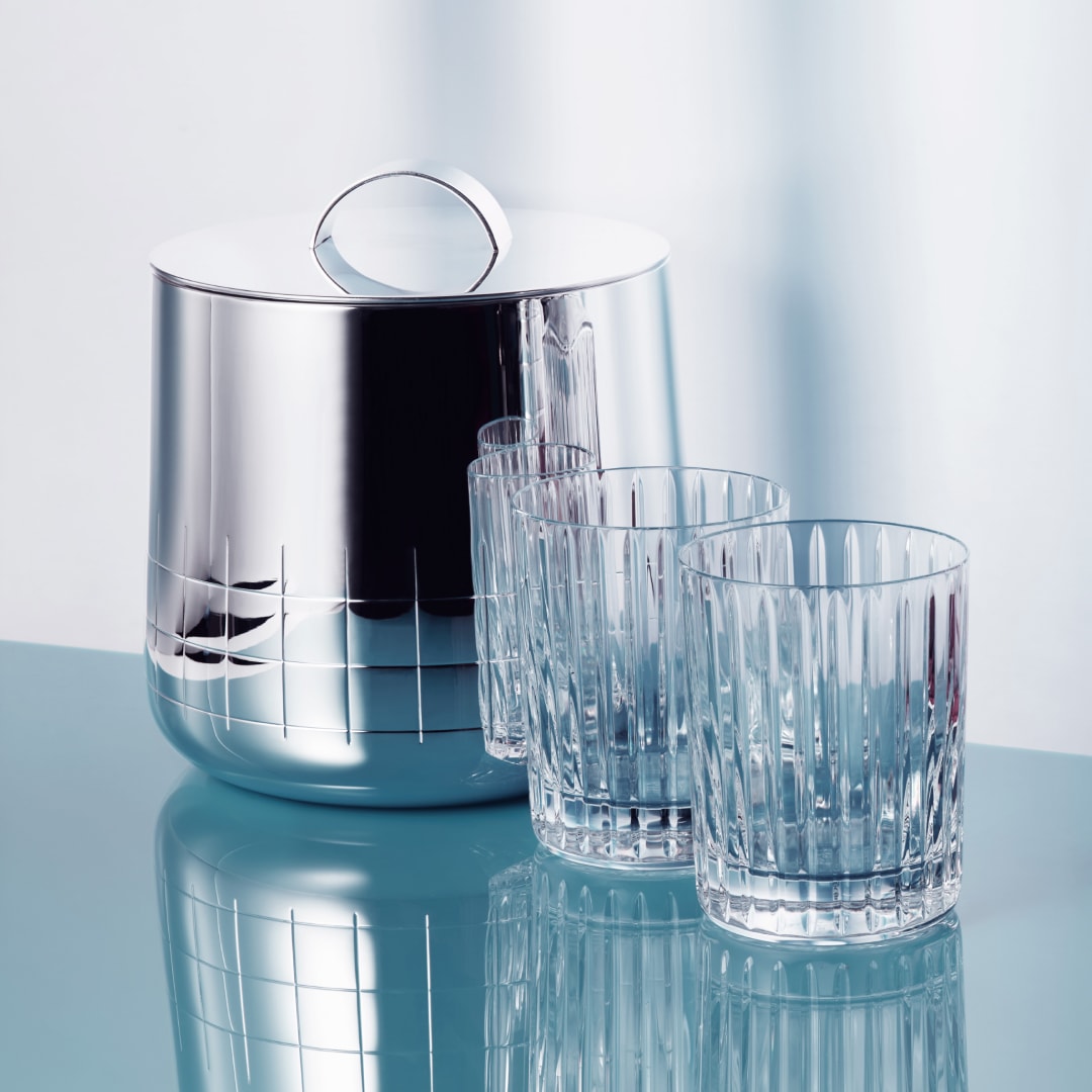 Mixed, shaken or stirred, your cocktails will be kept cool in Christofle’s Graphik collection while served up in the Baccarat Harmonie tumblers. These must-have accessories make a modern and masculine presentation for your favorite on the rocks refreshments.