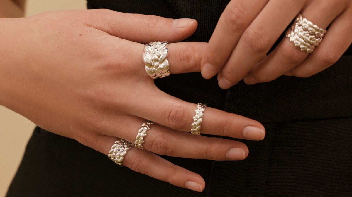 Pliage showcases interwoven silver bands in rings, bracelets, and pendants, creating virtuoso patterns