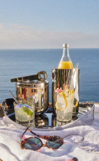 Add a touch of elegance to every moment outdoor with our selection of iconic Vintage pieces, elevated barware essentials like our Thom Browne buckets or a MOOD Party with its complimentary tray.