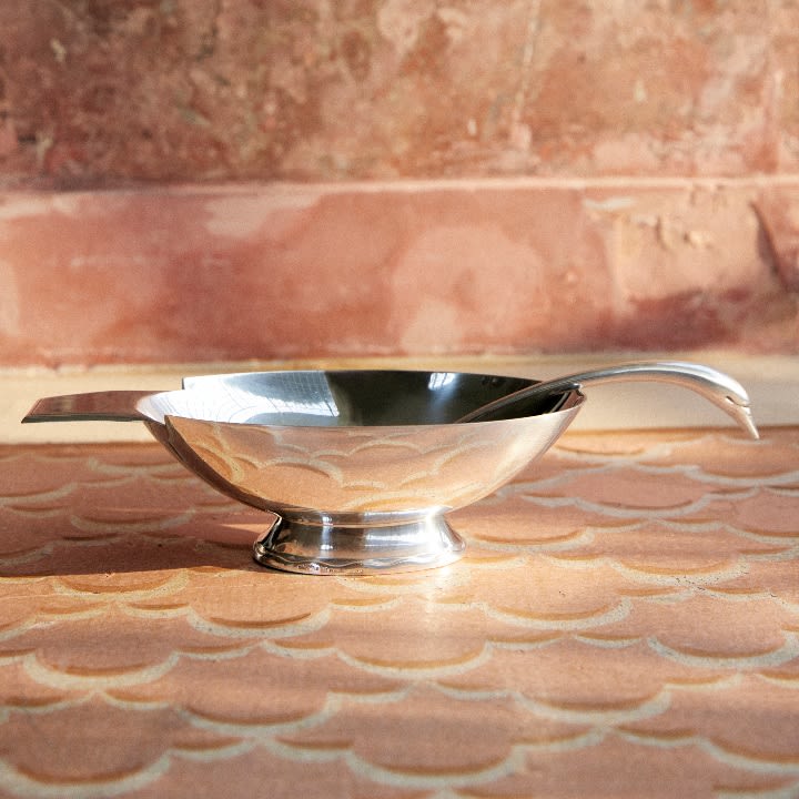 Embrace the elegance of the Art Deco era with Christofle’s Fjerdingstad Vintage collection. Featuring the beautiful Silvered Swan Gravy Boat, originally designed in 1925 by the renowned Danish silversmith, Christian Fjerdingstad, this collection epitomizes the innovative spirit of early 20th-century design. Each piece, a testament to Christofle's commitment to artisanship and luxury, has been carefully restored to its original glory, allowing you to own a piece of history.