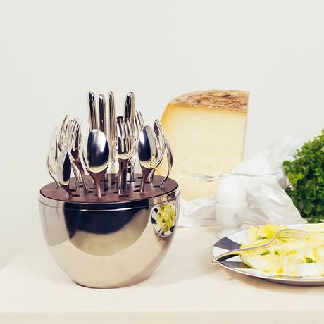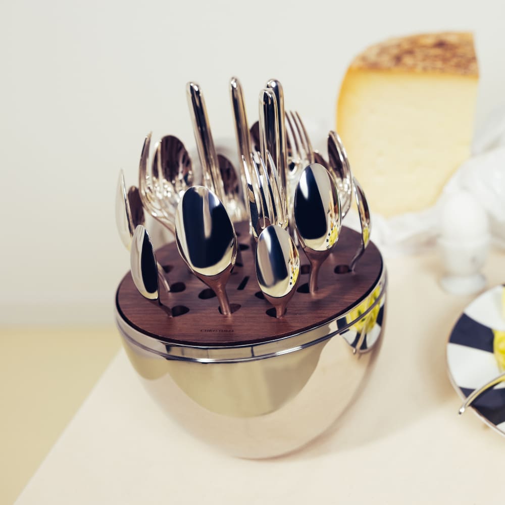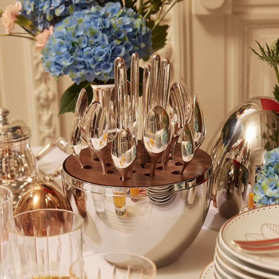 This set, launched in 2015, features 6 table knives, 6 table forks, 6 tablespoons, 6 teaspoons, and sits beautifully at the heart of the table—always ready, always iconic.